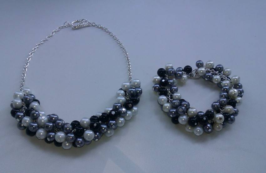 - Со вторым жгутом нужно проделать то же самое и добавить еще бусины в верхней части крепления листов между собой, чтобы колье лучше сидело.