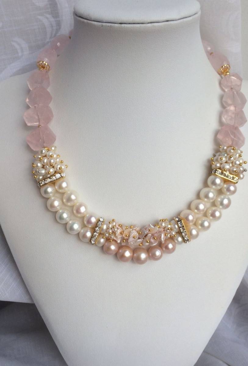 Выбор свадебного колье зависит прежде всего от образа будущей невесты и фасона платья. По цветовой гамме больше всего подойдут бисер и бусины белого оттенка, искусственный жемчуг, бежевые, перламутровые приглушенные тона. Красоту глубокого декольте выгодно подчеркнет изящное V-образное колье.
