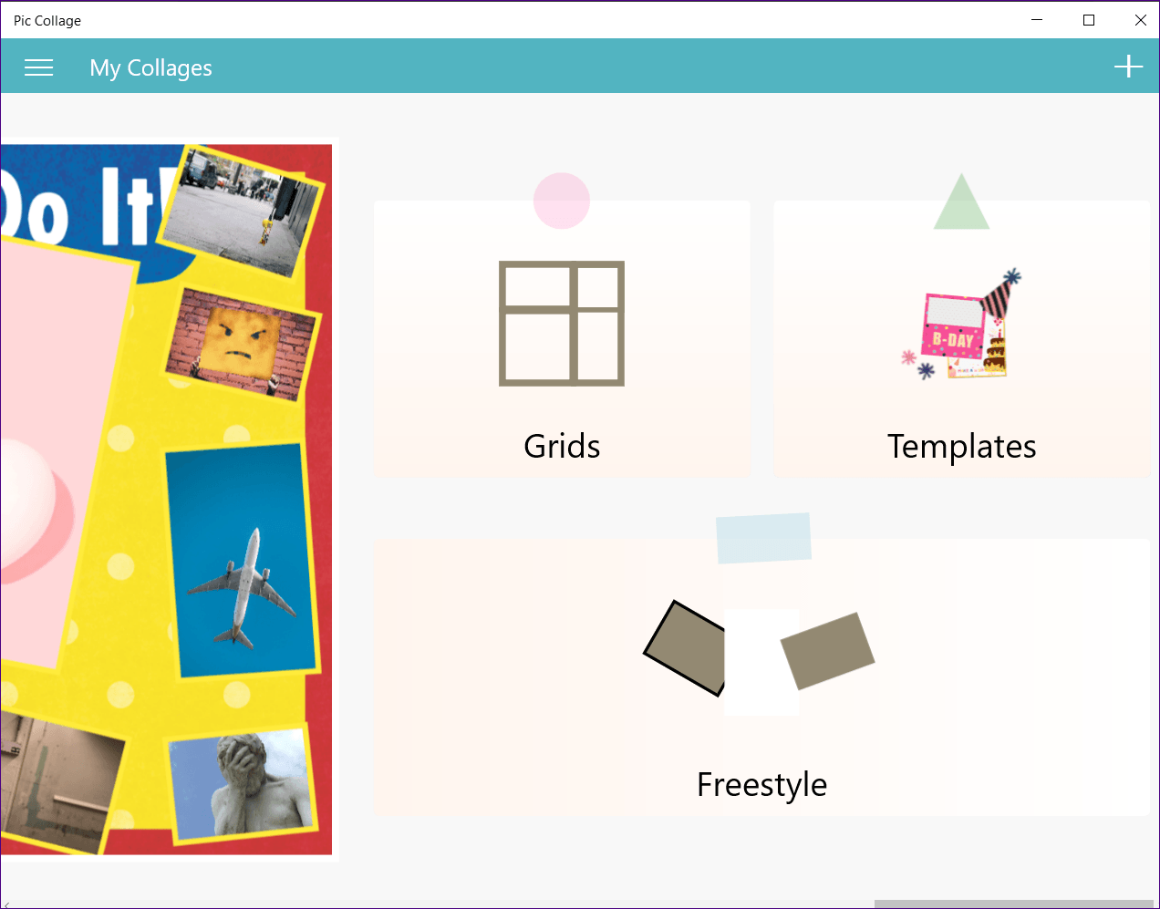 Позволяет смонтировать композицию из максимум 18 исходных фотографий, характеризуется наличием большого количества эффектов, шаблонов и наклеек.