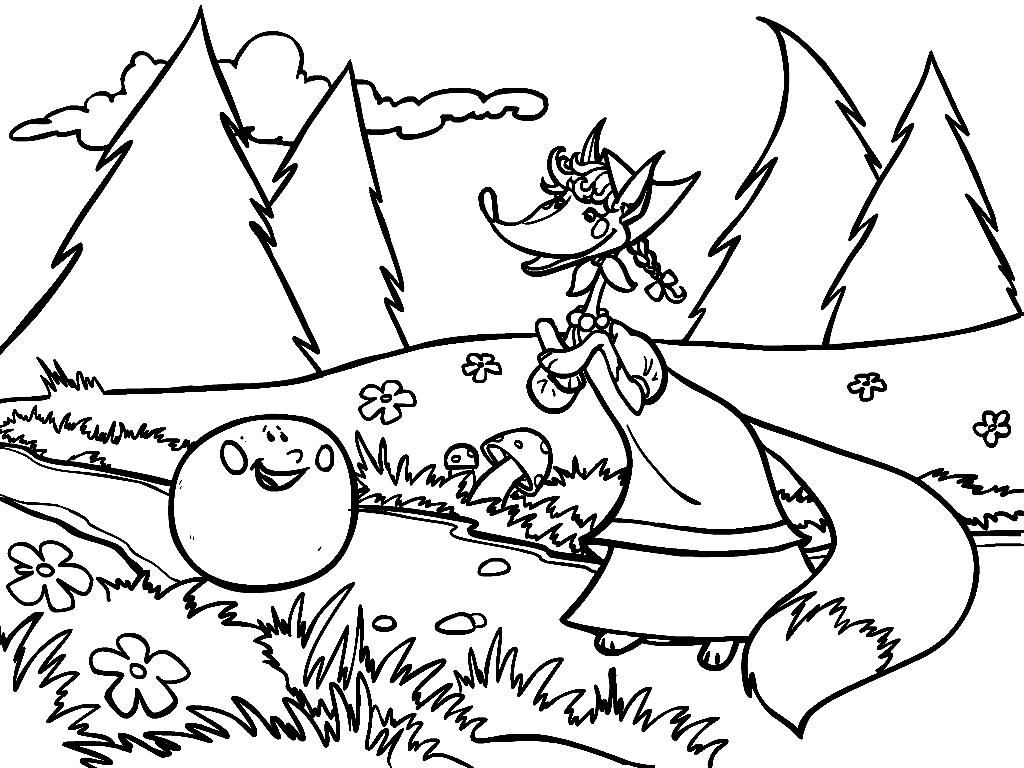 Сказку нарисовать нужно именно с этим персонажем. Советую нарисовать колобка вместе с лисой. Вот, могу предложить вам взять за основу вот эту картинку