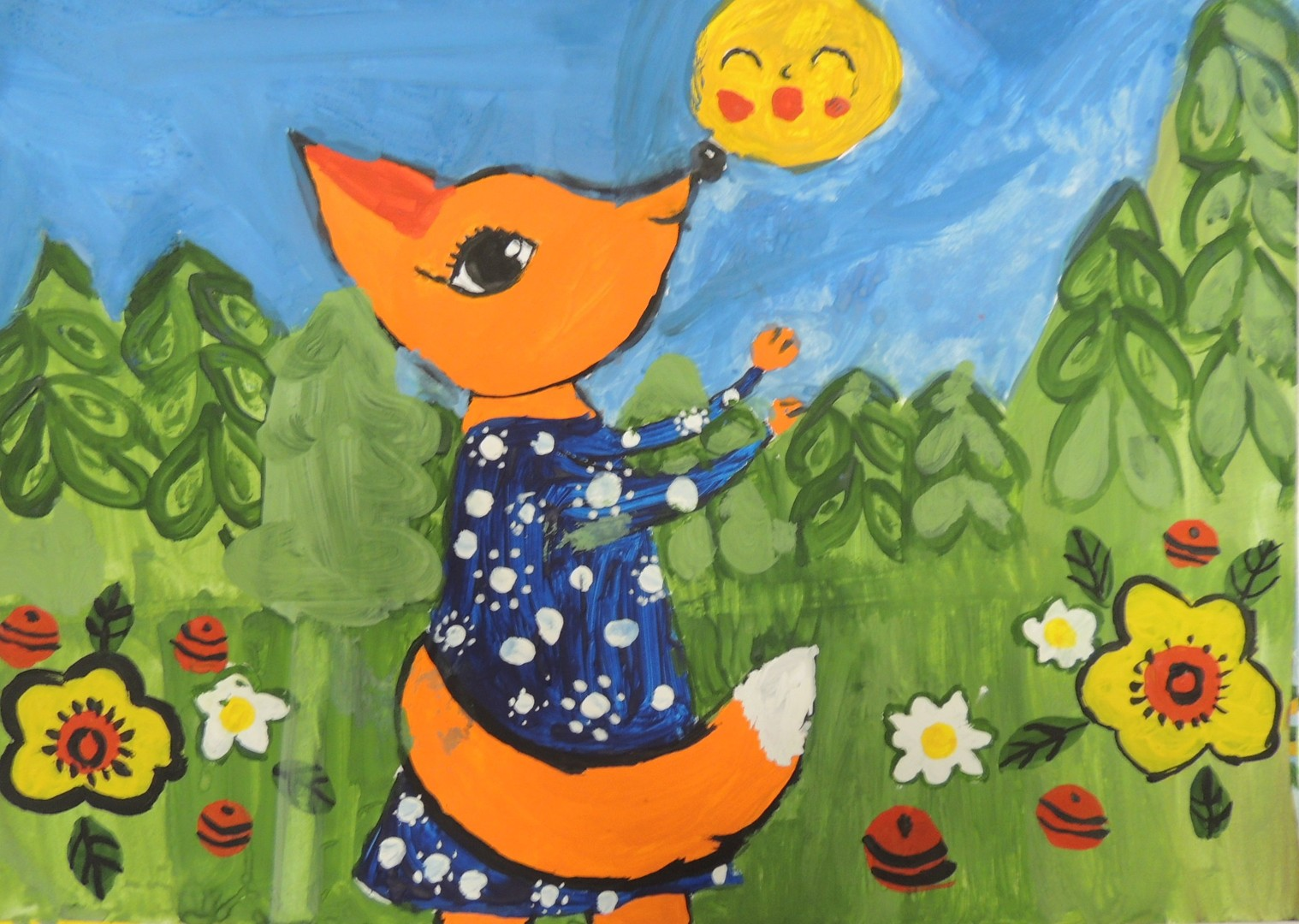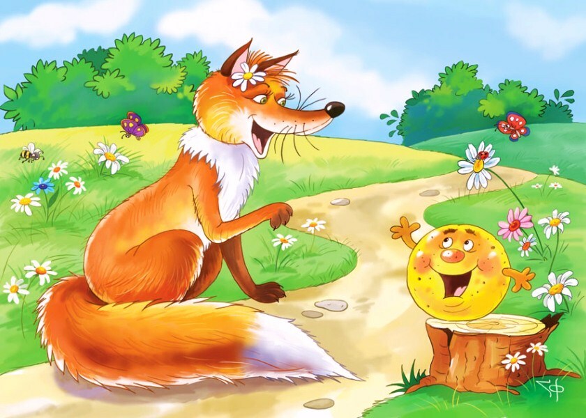 Но вообще ключевой момент — это встреча Колобка и лисы, вот пример рисунка: