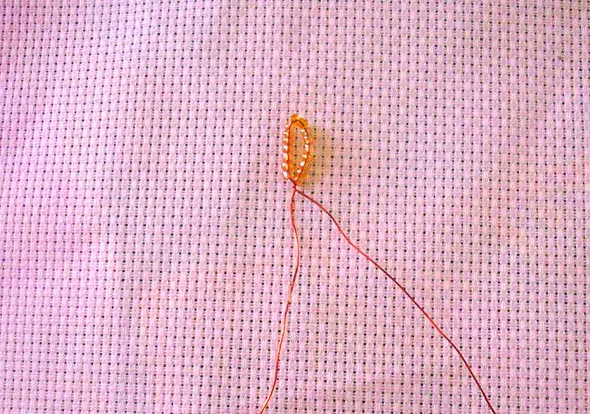Можно пройтись ещё раз нитками от зернышек вниз (если вы использовали флорленту, то одного раза будет достаточно).