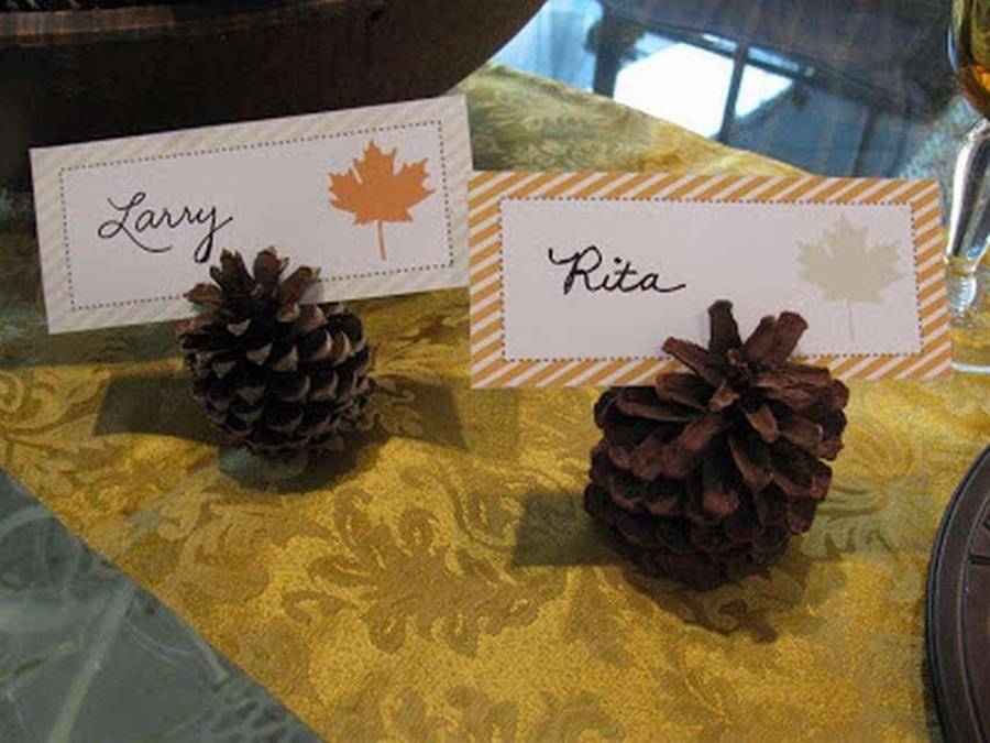 Выберите самые устойчивые шишки и используйте их как подставки для карточек с именами гостей.
