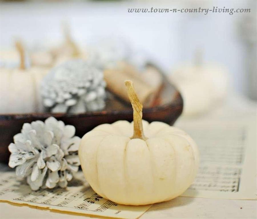 Возьмите маленькие декоративные или даже искусственные тыковки. Хорошо, если они будут сочетаться по цвету с шишками.