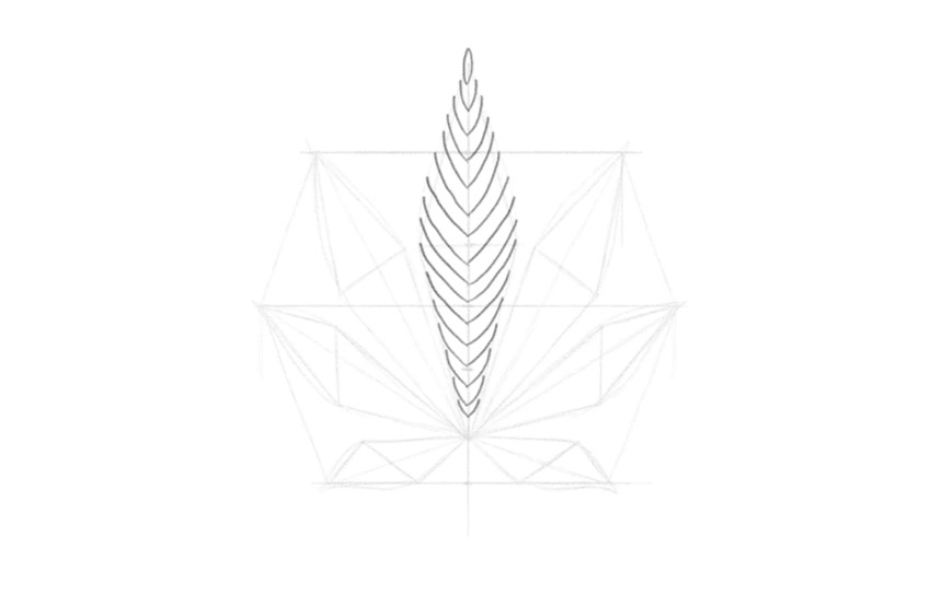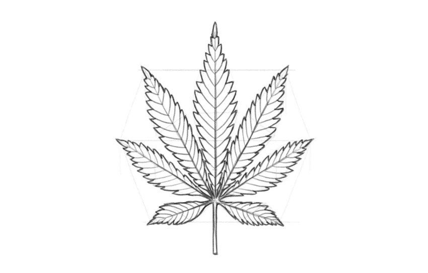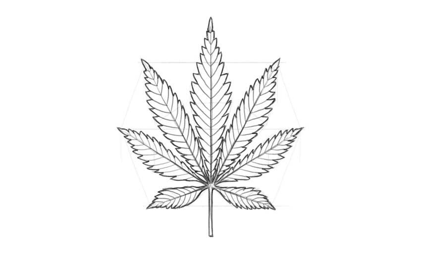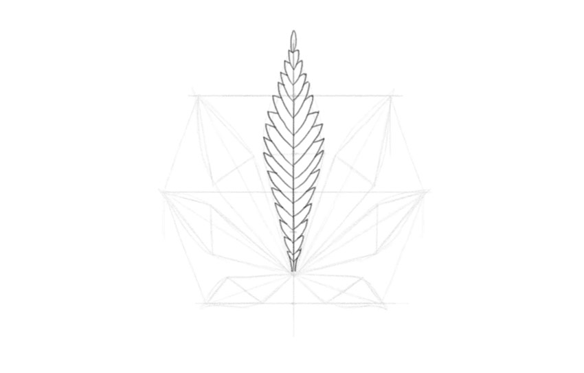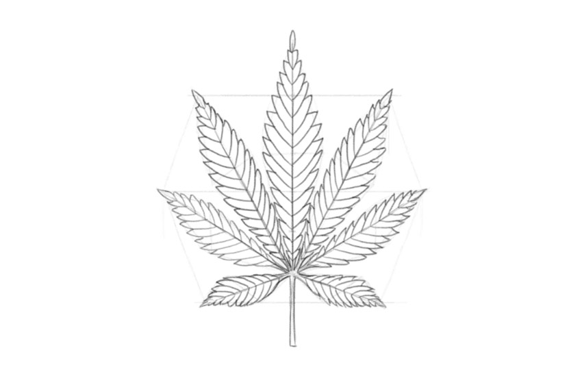 Продолжаем рисовать лист каннабиса и делаем то же самое с остальными лепестками. Закончив с листом, дорисовываем стержень.