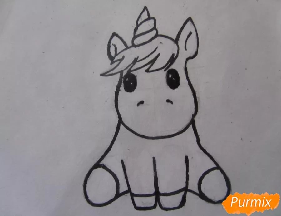 Под гривой начинаем прорисовывать передние лапы, где следует прорисовать все детали.