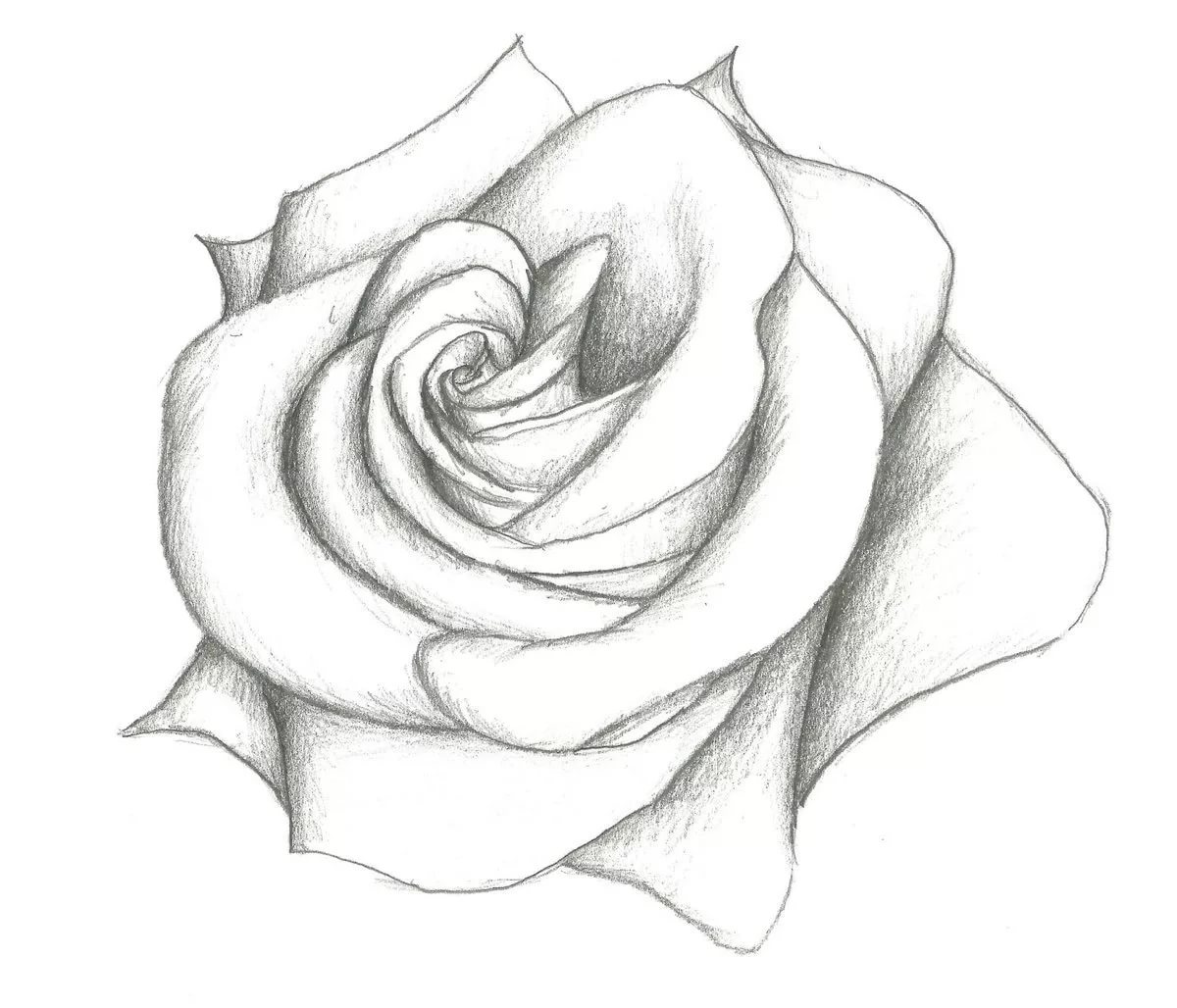 Поэтапные срисовки выглядят очень просто. В этом можно убедиться на примере мастер-класса с розой, который выполняется так: