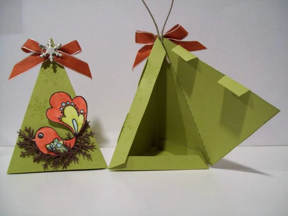 Прекрасный вариант использовать на Новый год в качестве упаковки коробочку в виде елочки. Подарок в ней порадует близких и друзей. Ее изготавливают из зеленого картона. В качестве декора уже изготовленного изделия обычно используют стразы, бусинки, пайетки, аппликации хвойных веточек, животных и так далее.
