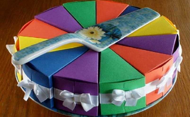 Самостоятельно сделанные коробки для подарков могут быть самых разных форм, например, в виде чайной чашки, торта, карандаша. Для создания коробочки-чашки, предназначенной для легких вещей, за основу берется шаблон пирамиды, окружность в которой делится на 8-12 равных элементов. После создания выкройки надо перенести ее на картон и вырезать заготовку.