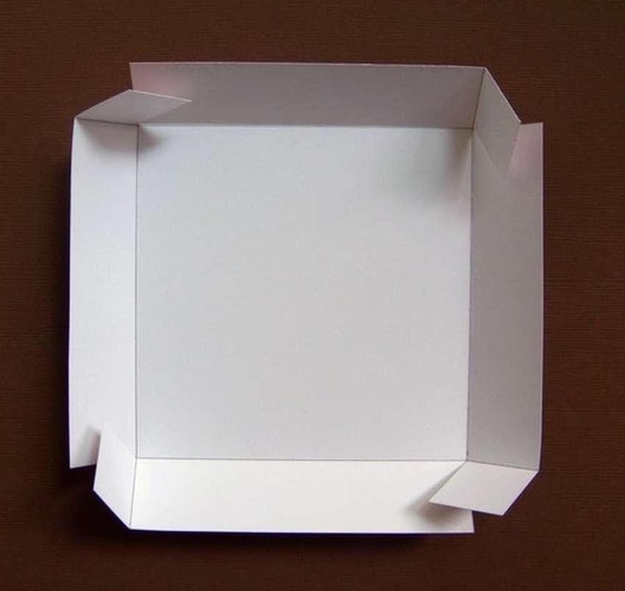 Сделать такую коробку – проще простого. Понадобятся квадратные листы бумаги, лучше взять картон. На одном от одного угла к другому прочертить линии, которые будут скрещиваться по центру.