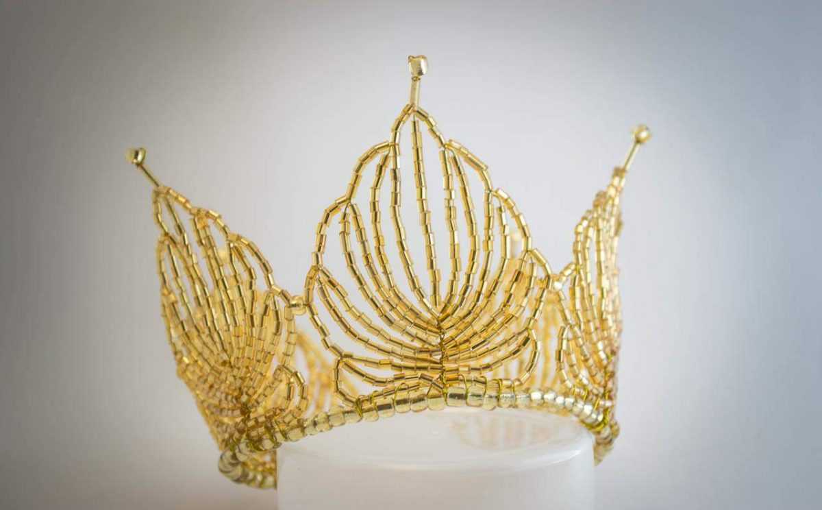 Первый мастер-класс посвящен созданию золотистой короны из бисера и проволоки.