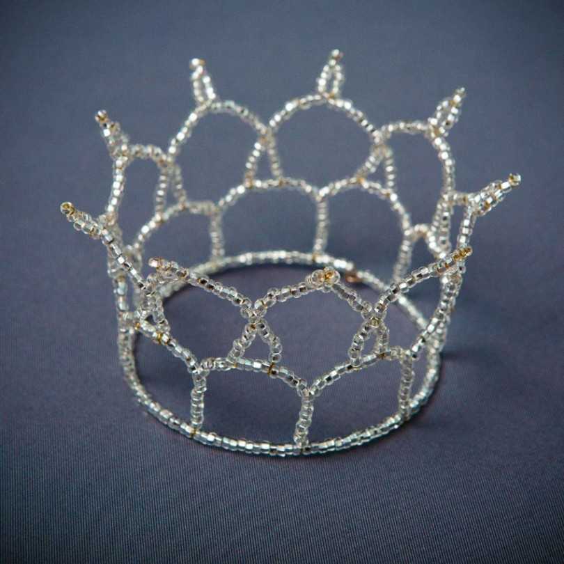 Рассмотрим еще оно руководство по созданию интересного изделия. Для того чтобы сделать красивую корону из бисера, которая будет хорошим украшением, понадобится всего пару часов. Вам нужна будет проволока большого сечения, бисеринки и материал, на который их нанизывать. Итак, этапы ваших действий: