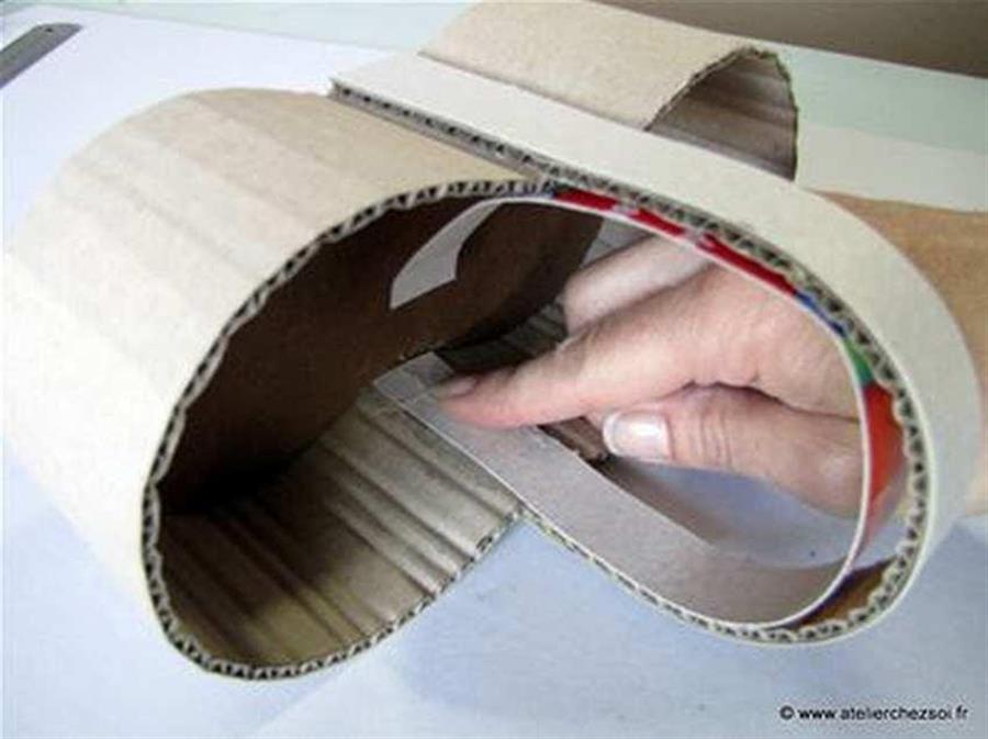нужно вырезать из картонной коробки овал нужного вам размера, затем следуйте фото инструкции: