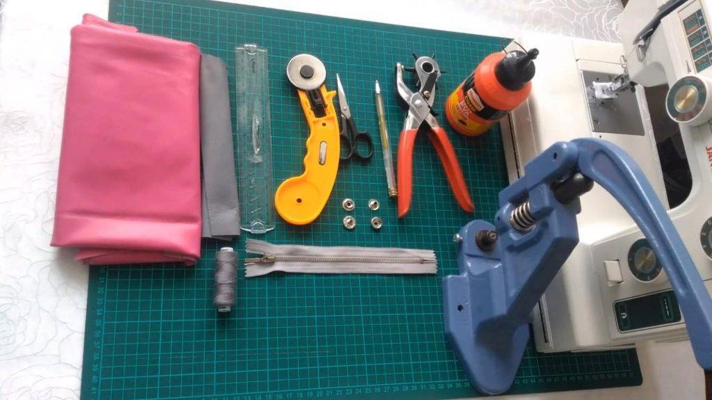 Чтобы правильно раскроить кожу, нужен острый нож — это может быть канцелярский нож, сапожный, или скальпель. Ножницы нам понадобятся большие портновские (резать по-прямой) и маленькие маникюрные (для закруглений). Перед склеиванием кожу лучше обезжирить бензином или жидкостью для снятия лака и высушить.