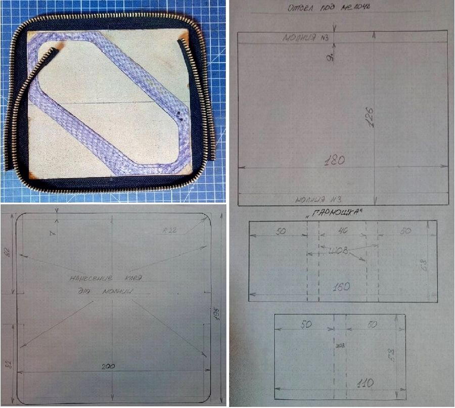 - В карманы вшить молнии, а элементы без застежек тщательно проутюжить. Окошко для документов или фотографии можно сделать из любой плотной пленки.