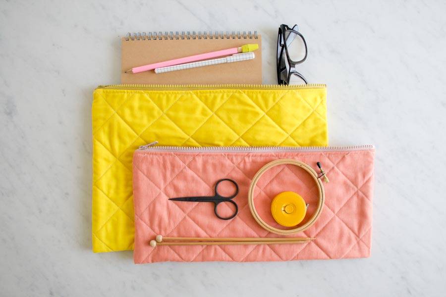 Данная модель является самой простой и легкой в исполнении. Нужно взять два равных тканевых прямоугольника, их краешки подогнуть и прострочить. Затем прострачивается молния. Половинки нужно сложить между собой и прошить боковыми швами. Уголки складываются и для удобства закрепляются булавками. Затем изделие нужно прострочить и вывернуть.