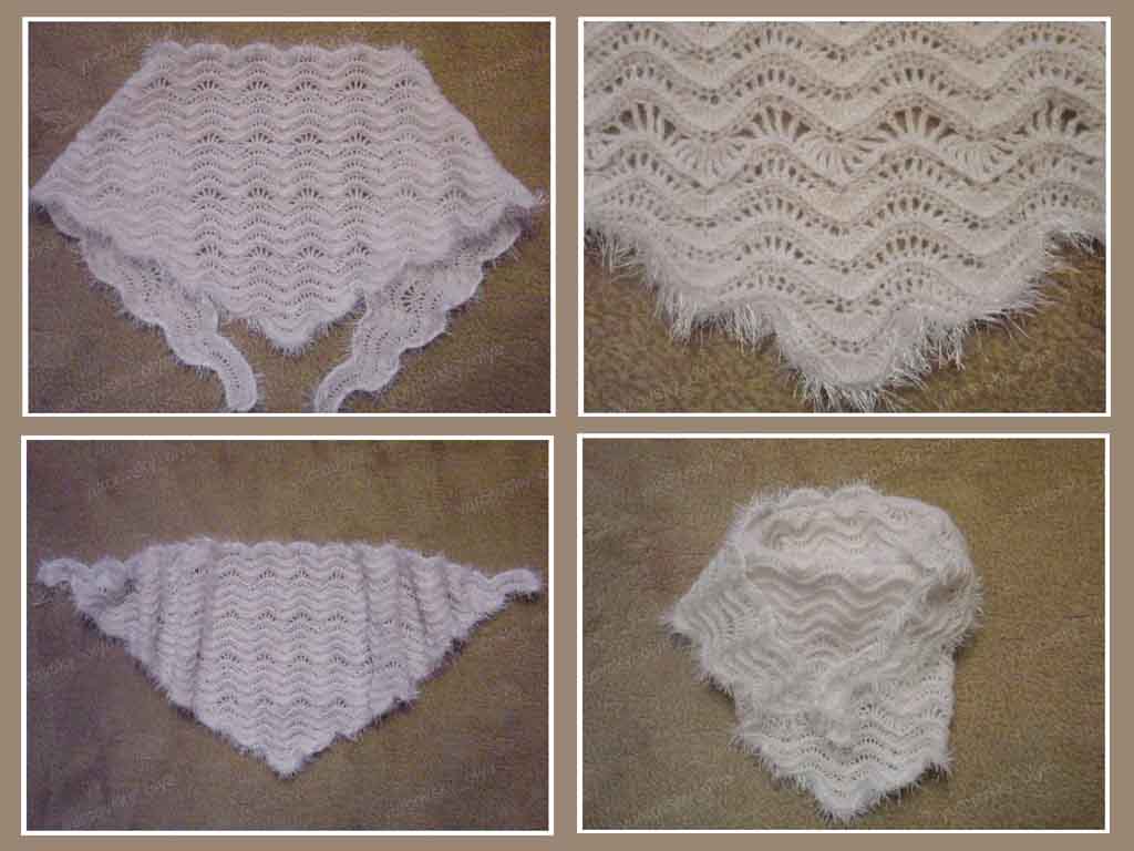 Узор изделия несложен. Вяжется она от широкой стороны к сужению. Это немного облегчает работу.