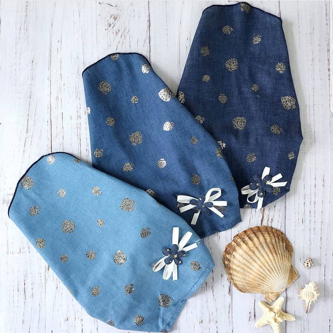 Второй вариант пошива — простая хлопчатобумажная косынка, имеющая резинку сзади, которая вставлена в ткань с основной частью. При этом она вшивается в материал, а тканевая полоска, имеющая резинку, присобрана.
