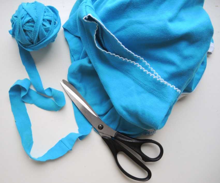 Пожалуй, этот способ можно назвать самым простым. Для выполнения работы не нужны специальные знания, инструменты и навыки. Понадобятся только ножницы и футболки.
