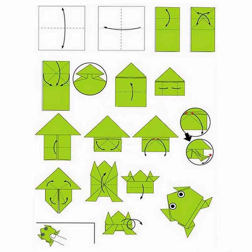 Чтобы повысить «прыгучесть» лягушки, рекомендуем делать эту модель из плотных листов размером на больше 10х10 см.