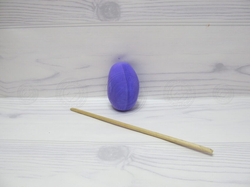 - Верхнюю треть разрезают стекой на три равные вертикальные «основы» – это будущая голова и руки.