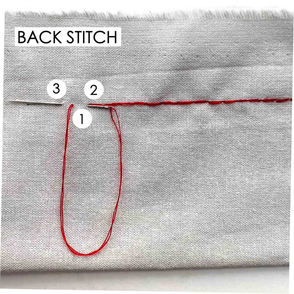 - вытянуть иглу и снова отступив назад 1 стежок, пройти под тканью на 2 стежка вперёд;
