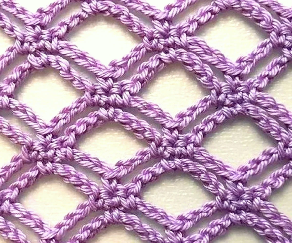 Самый простой сетчатый узор — филейная сетка, на ее основе вяжутся сложные филейные кружева: