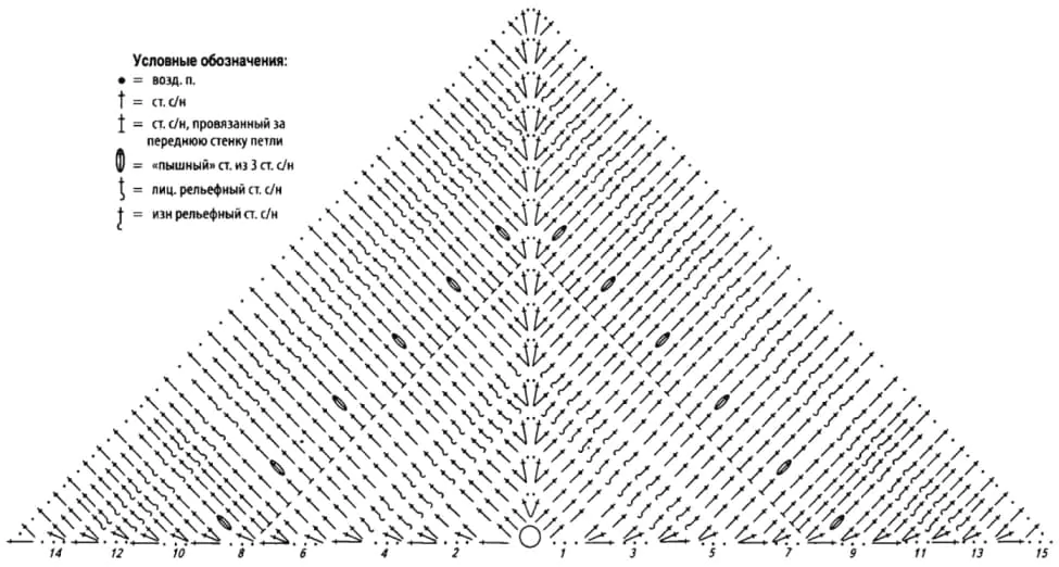 Вот таблица с инструкциями по вязанию веерного рельефного узора: