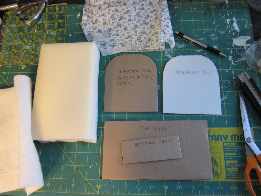 Мебель для спальни можно изготовить из бумаги в технике оригами, склеить из картона и раскасить, но самый уютный и красивый вариант — мягкая мебель из картона, поролона и ткани. Клеить все можно и на обычный ПВА, правда сохнуть он будет долго. Вместо поролона можно взять синтепон или ватин, на крайний случай вату.
