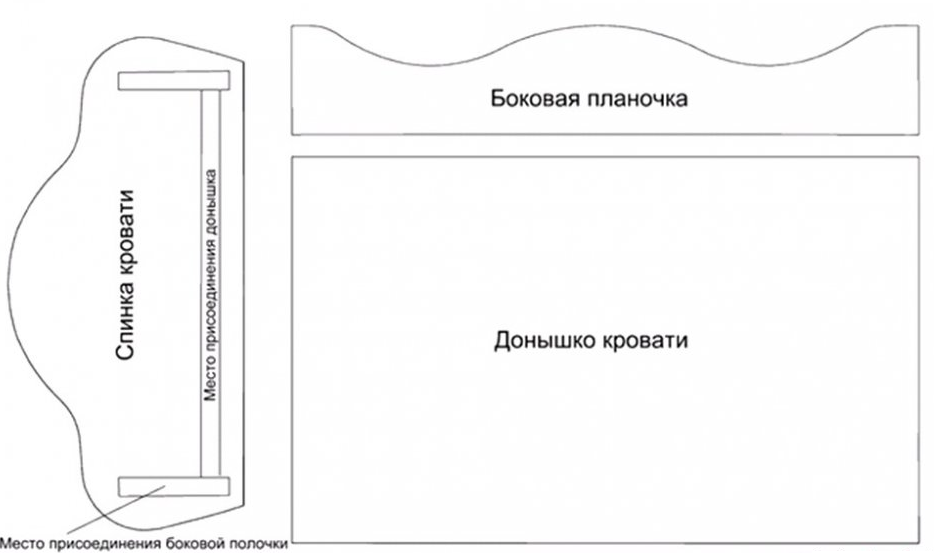 - На бумажном листе схематически изображается желаемая модель кровати. Параметры конструкции зависят от размеров куклы.