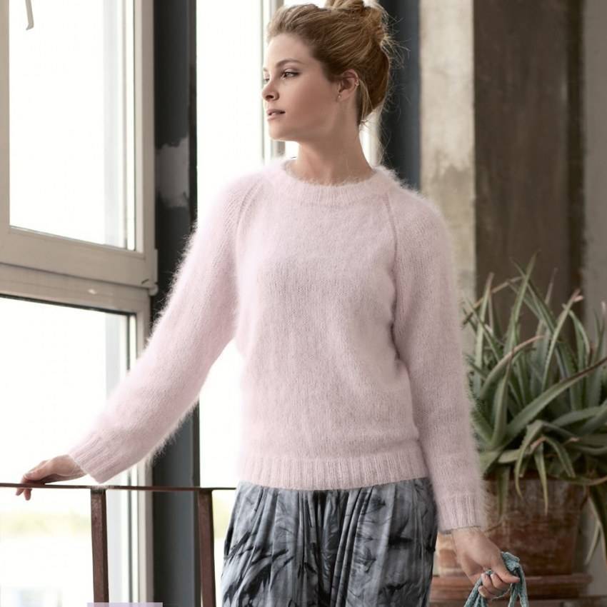 пряжа (41% шерсть, 9% альпака, 32% полиакрил, 18% полиамид, 115 м/50 г) — 500 г розовой, круговые спицы №6-7, вспомог. спицы.
