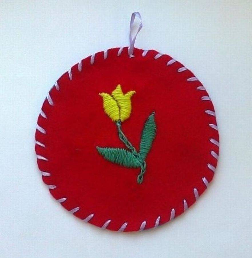 Прихватка для кухни из фетра с вышивкой. На кухне прихватка – совершенно необходимая вещь, а фетр так вообще универсальный материал. Кроме прочего стоит особо упомянуть способность фетра выдерживать высокие температуры, так что вполне применим и как наполнитель.