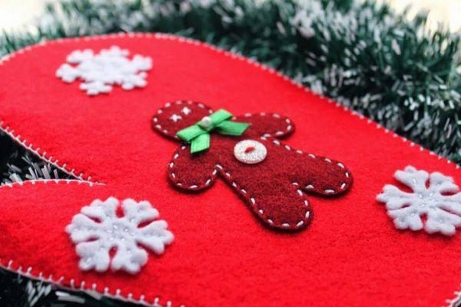 Кухонная прихватка из фетра своими руками в форме рукавицы может стать подарком к новогодним праздникам. Подчеркивает волшебную атмосферу праздничной кухни.