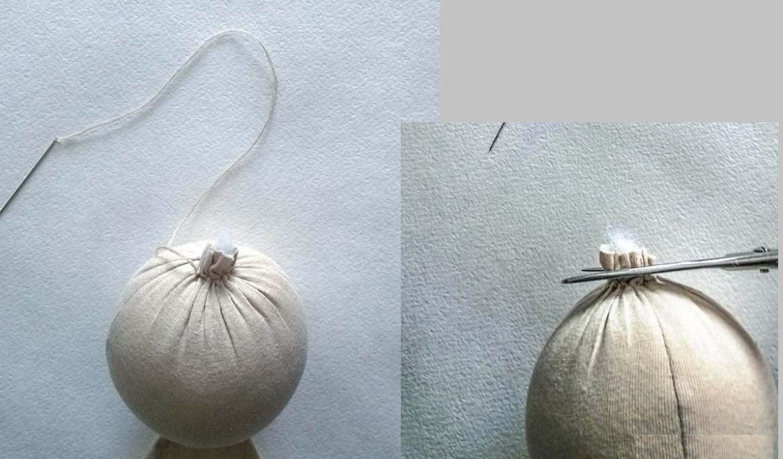 Теперь создаем голову, вставив шар с синтепоном в деталь головы.