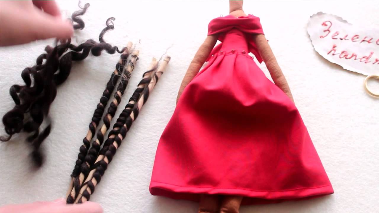 - Изготовление волос может выполняться в виде пришитого к голове парика («обнимашки») или надежно закрепленных прядей («заплеташки»). В обоих случаях стежки должны быть плотными, во избежание просвечивания ткани головы. Многие искусницы вместо волос размешают на головке шапочку.