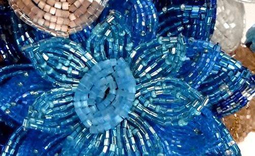 - синие, голубые двух оттенков, красные, розовые бусины.