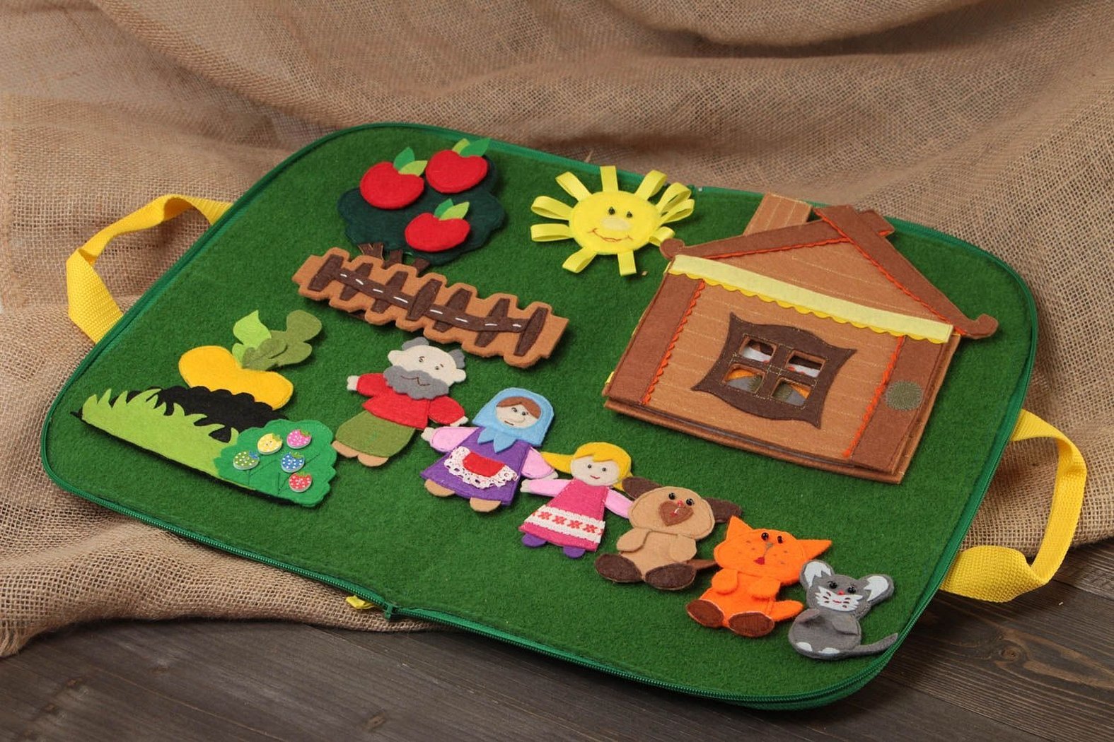 Настольному театру нужны объёмные фигурки персонажей, чтобы они могли стоять. Сцену и декорации можно сделать из фетра и обрезков ткани.