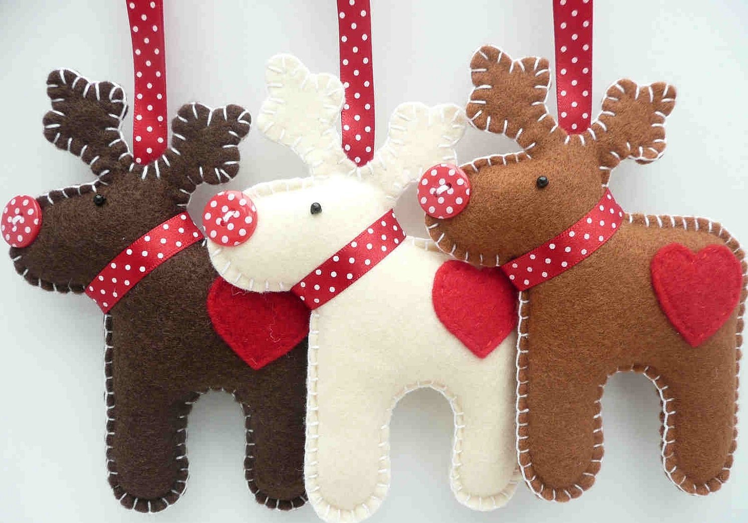 Вот несколько идей того, какую новогоднюю фетровую игрушку можно изготовить: