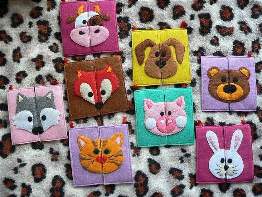 | Самодельные пазлы | Интересны малышам пазлы, где есть изображения игрушек и зверей. Картинки для самых маленьких следует выбирать простые: единорога, зайца, самолет, машинку, мышку. Для скрепления деталей можно использовать липучки. |