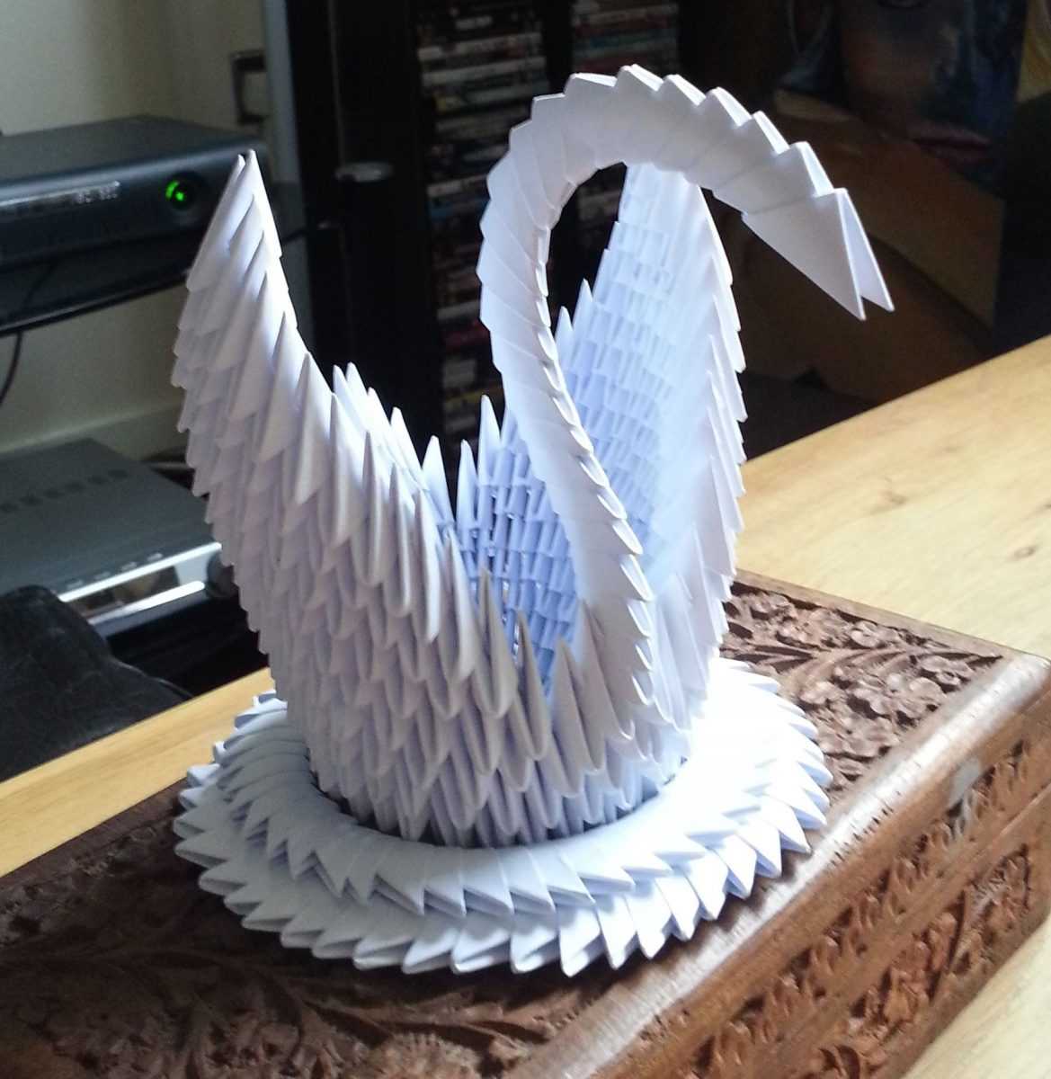 - Лебедь из бумажных модулей готов.