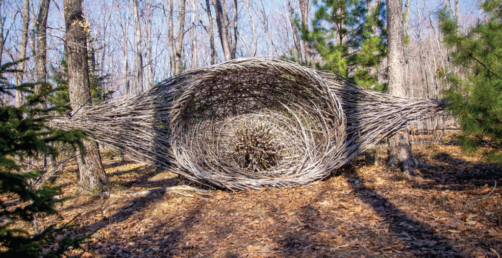 Другой яркий пример направления – активистка Беверли Нейдус, создающая инсталляции про проблемы экологического кризиса и ядерного наследия. Её авторский проект Eden Reframed восстанавливает деградировавшую почву с помощью сложного комплекса очистки с использованием зелени и грибов, в результате чего возникает новое пространство для выращивания и сбора лекарственных и пищевых растений.