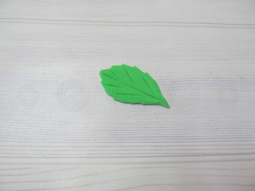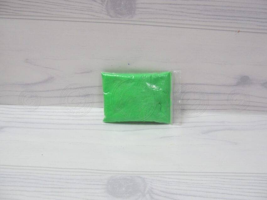 - Прослойку пирожного вырезают из более тонкой пластилиновой лепешки салатового цвета.