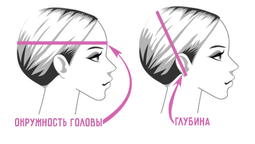 - Окружность головы. В данном случае мерка снимается по лобной части непосредственно над бровями с захватом наиболее выпуклой части на затылке. Необходимо сильно натягивать измерительную ленту и не оставлять свободных мест.