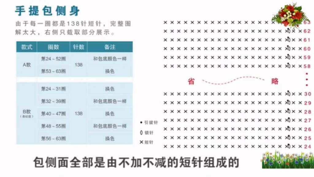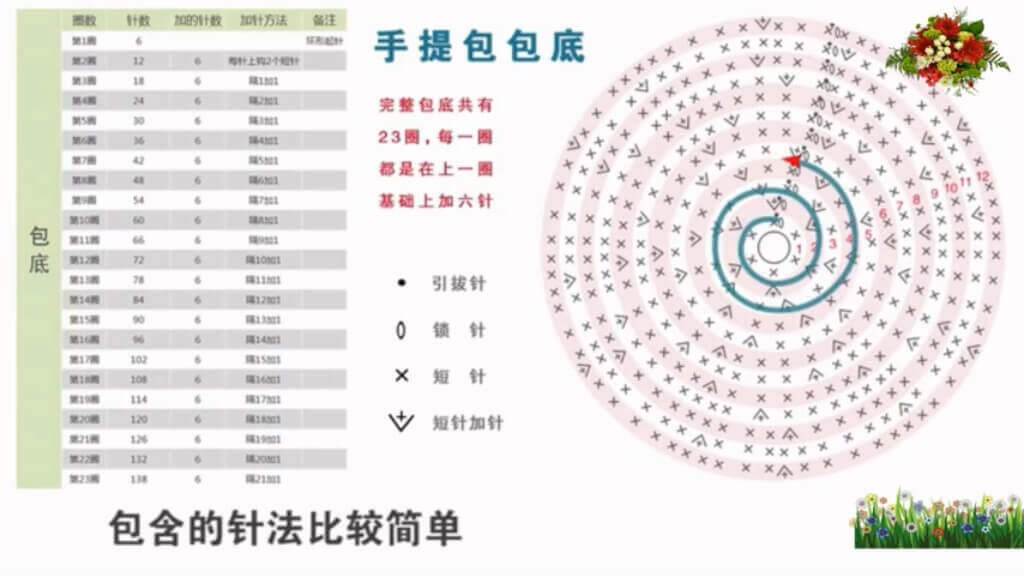 А на этой простой схеме указано, как вязать основную часть из СБН. В видео от автора показано всё подробнее, и хотя язык – японский – понять несложно.