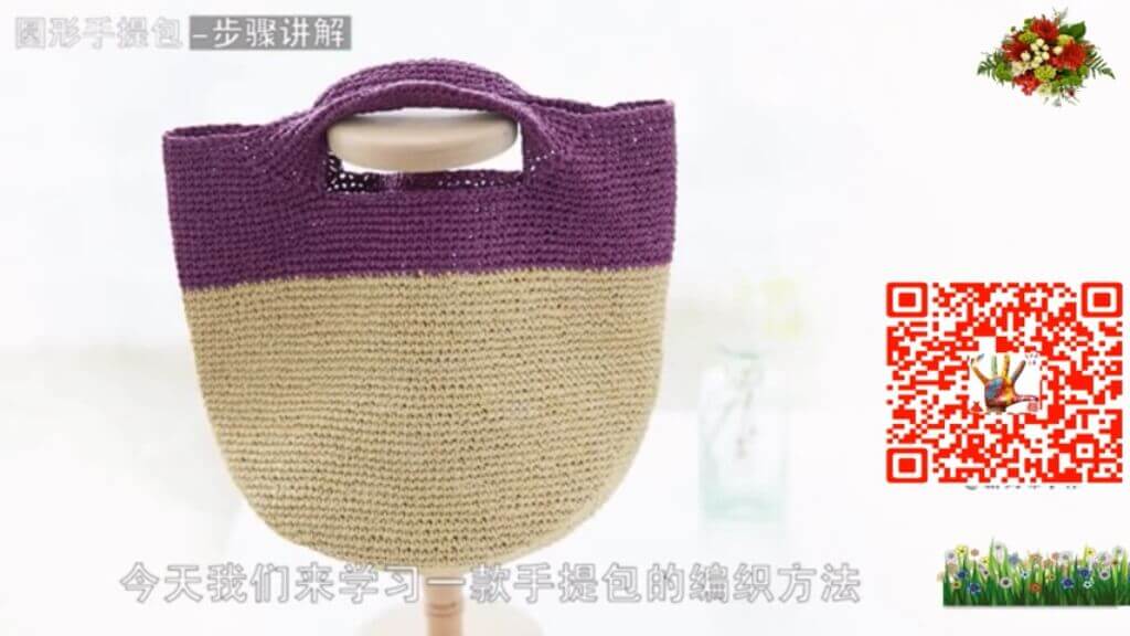 鉤針編織包包 棉草雙色圓形手提包 1/2