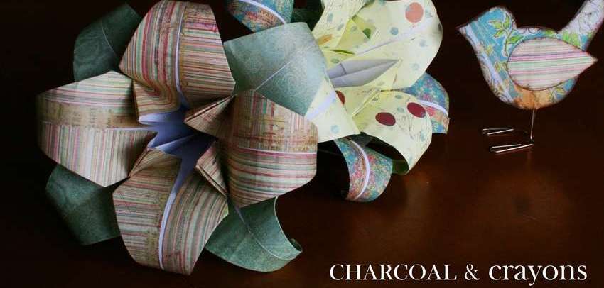 Для изготовления этих изделий используются старые журналы или газеты. Таким образом можно сделать большие цветы из бумаги — методика простая, а поделки из бумаги получаются довольно эффектные.