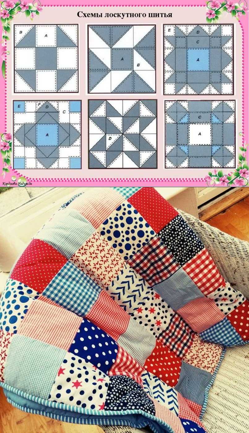 Не менее важно, чтобы узоры на блоках сочетались друг с другом. Удачным является сочетание однотонных и пестрых материй (см фото)