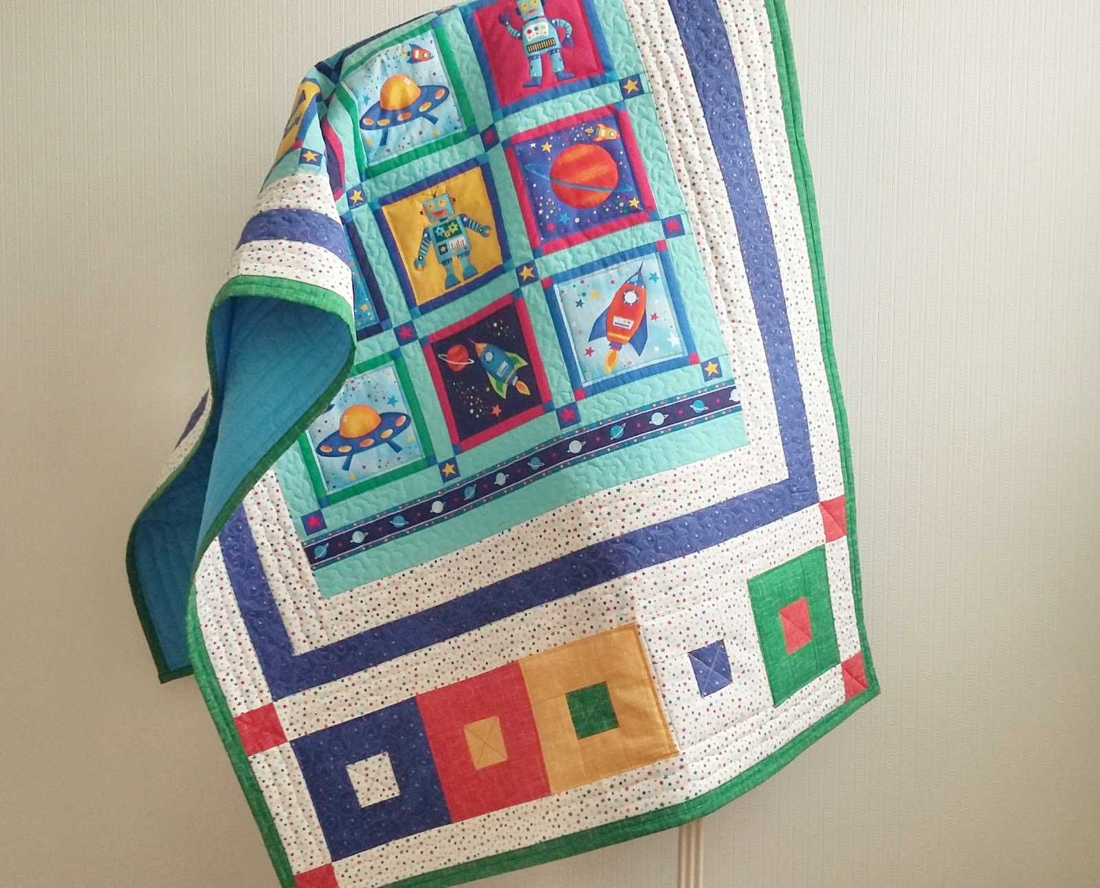 - Перед тем как приступить к созданию детского одеяла ткань необходимо постирать и прогладить (так готовое одеяло не осядет после стирки)2. После этого можно отмерить и вырезать квадраты разных цветов размером 27х27 см. Всего таких квадратов необходимо создать 243. Выложите на ровной поверхности изнаночный отрез ткани, который должен быть на несколько сантиметров больше лицевой стороны и пристрочите к ней синтепон5. На полученную заготовку выложите по краю, в линию квадраты и приколите их булавками к заготовке6. Пристрочите квадраты к заготовке по нижней и боковым линиям квадратов, не затрагивая верхней их стороны, которую опять приколите булавками7. По линиям, немного подворачивая квадраты чтобы скрыть их края, пришейте все квадраты к заготовке8. Торчащие края одеяла можно подрезать и пристрочить по бокам небольшие полоски ткани, которые скроют погрешности и неровности