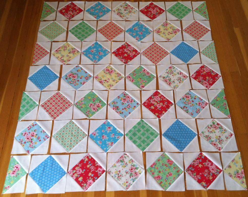 Первым шагом будет раскладывание лоскутов в необходимом порядке.