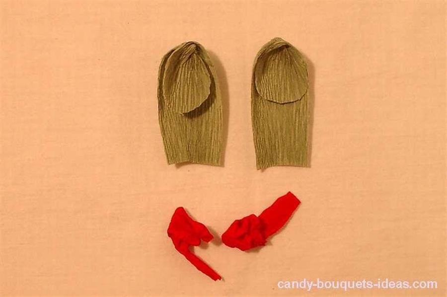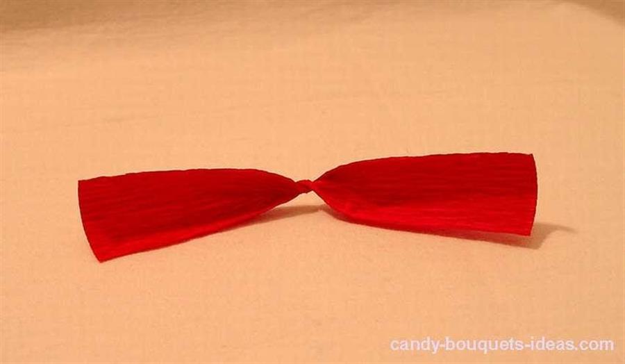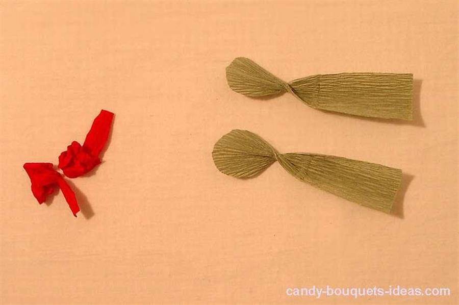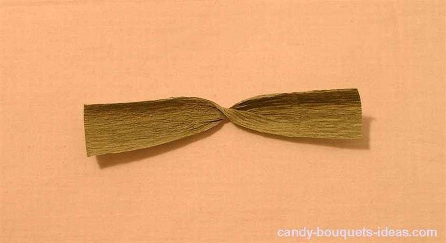 Берём прямоугольник из зелёной бумаги и скручиваем его бантиком, как на фото.